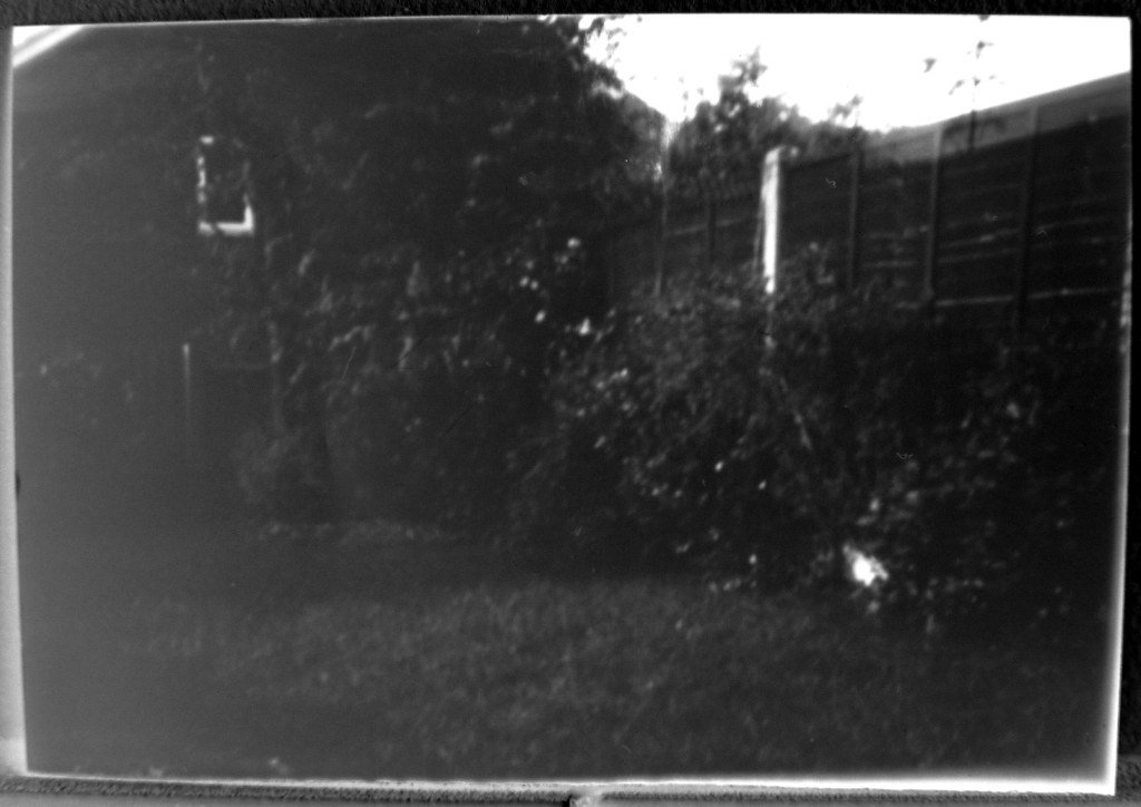 The camera's still light-proof and I developed the paper successfully so I'm really happy. The only thing was that there were obviously problems with a couple of the pieces of paper. I remember possibly being a little bit careless with the paper when I first used it years ago because it was just a few sheets of cut-up stuff. So I think that could explain one of the photos which looks half already exposed as well as being a double exposure, so I obviously forgot to mark it as an exposed piece and develop it last time.